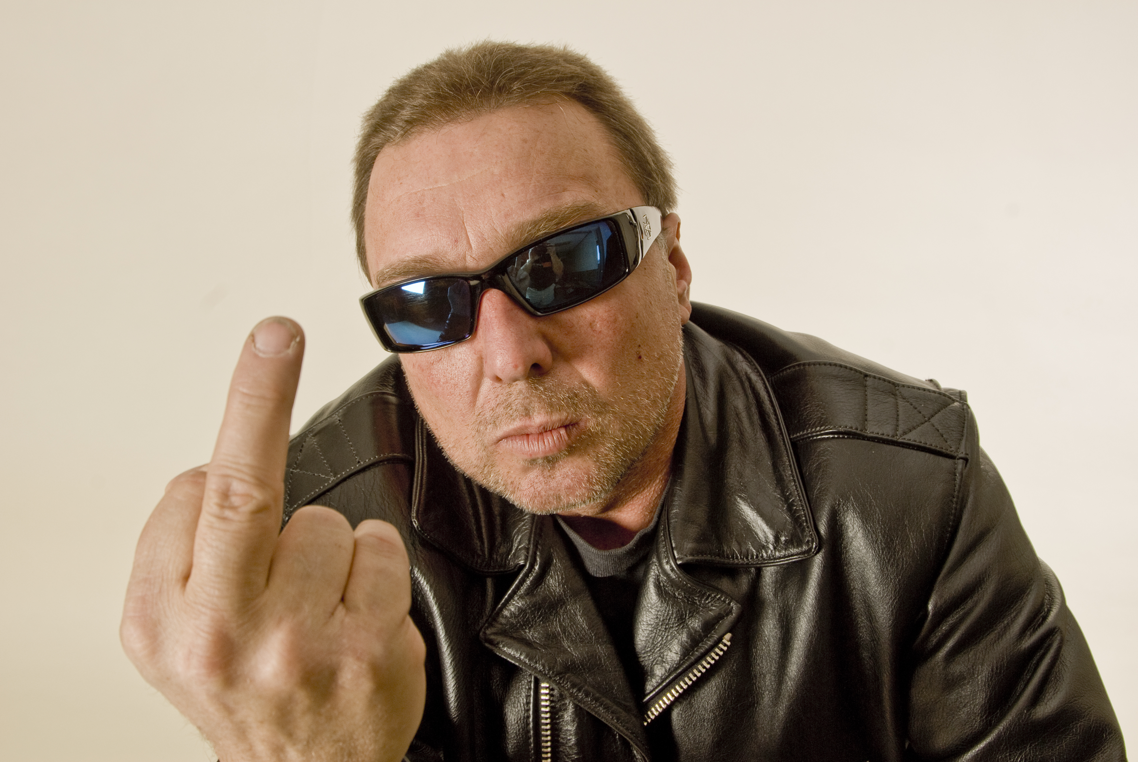 The expression was of his own choosing, portraying the perceived bikie persona I guess.