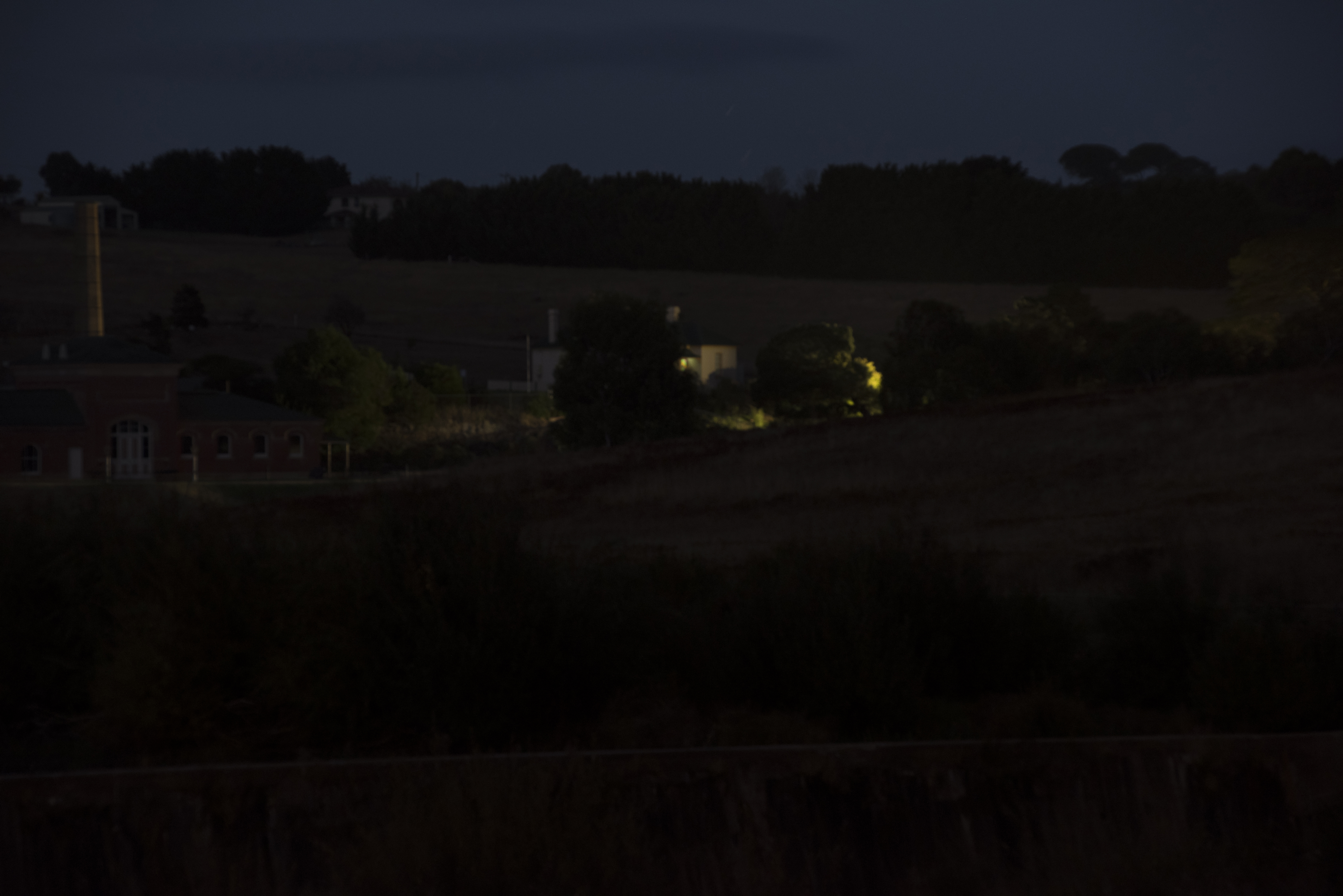 From my selected viewpoint on a bridge crossing the Wollondilly River just after 5.45am I could just make out the lights of an outbuilding near the historic Goulburn Waterworks and not much else. I set my camera up on the tripod, checked the light meter, readied the camera for my first exposure and set the ISDO at 640. Here is No 1, lens set at 200mm, exposure 30 seconds @ f2.8, ISO 640.